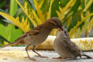 Eles voavam ligeiro para o lado da janela ,bicavam as migalhas